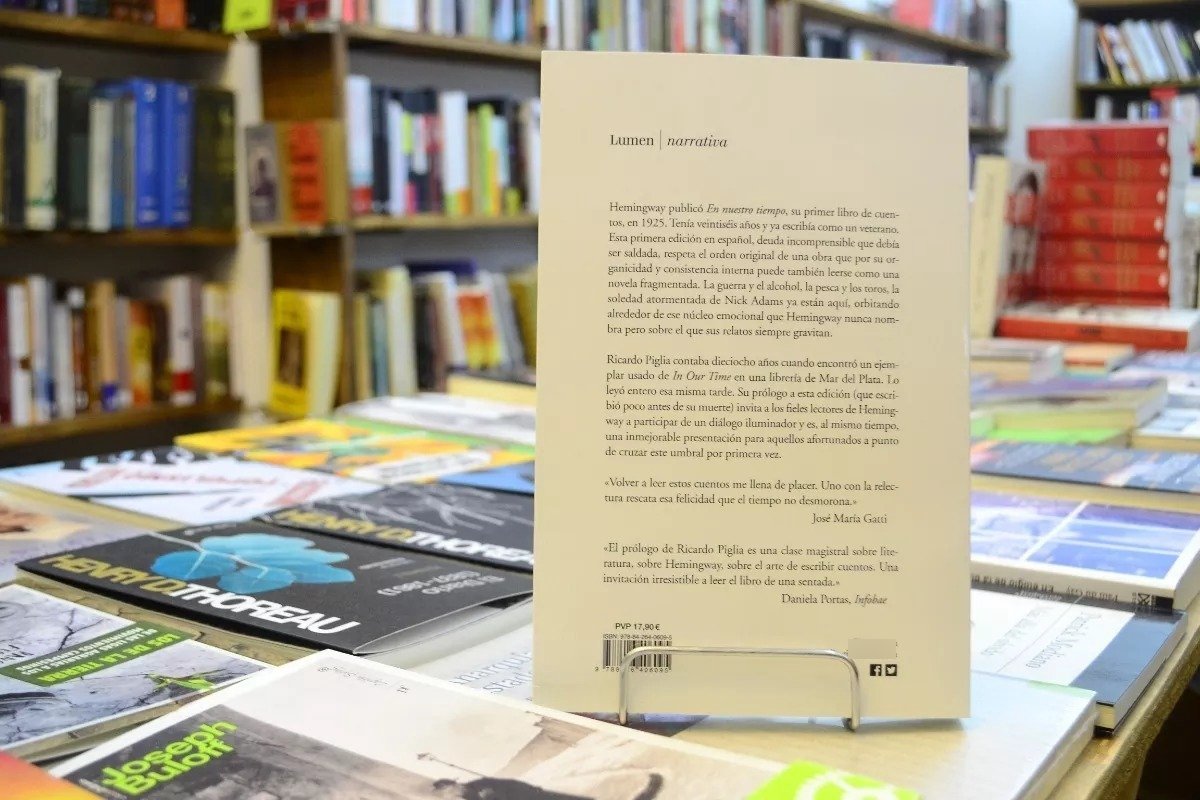 Ricardo Piglia tenía 18 años cuando encontró un ejemplar usado de In Our Time en una librería de Mar del Plata. Lo leyó entero esa misma tarde. Su prólogo a esta edición (que escribió poco antes de su muerte) invita a los fieles lectores de Hemingway a participar de un diálogo iluminador y es; al mismo tiempo; una inmejorable presentación para aquellos afortunados a punto de cruzar esta puerta por primera vez.