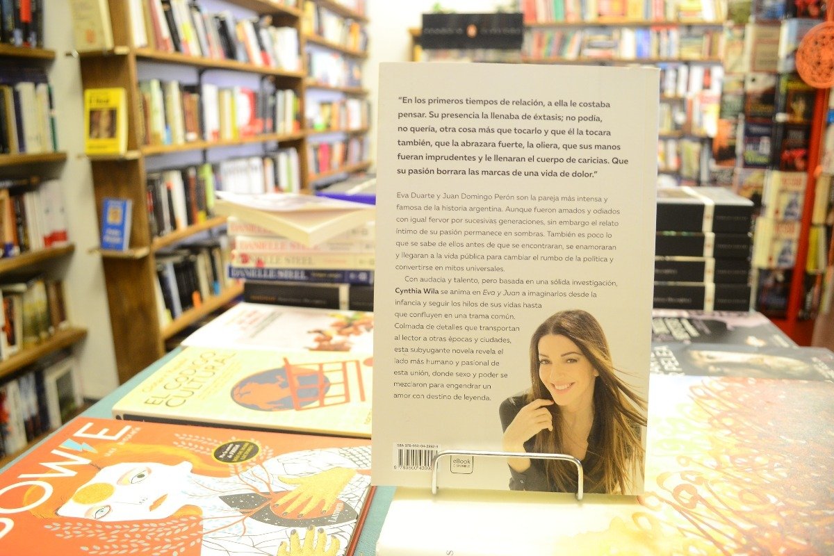 Con audacia y talento, pero basada en una sólida investigación, Cynthia Wila se anima en Eva y Juan a imaginarlos desde la infancia y seguir los hilos de sus vidas hasta que confluyen en una trama común. Colmada de detalles que transportan al lector a otras épocas y ciudades, esta subyugante novela revela el lado más humano y pasional de esta unión, donde sexo y poder se mezclaron para engendrar un amor con destino de leyenda.