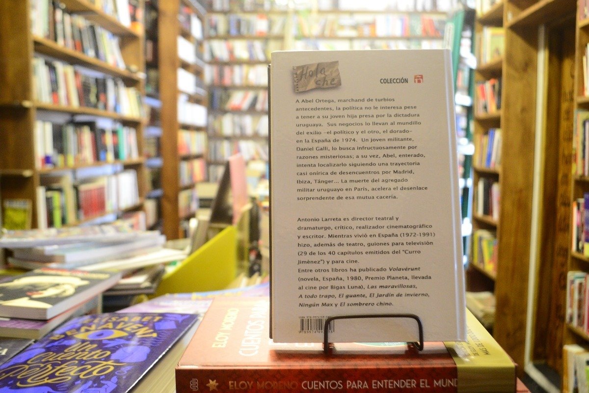 A Abel Ortega, marchand de turbios antecedentes, la política no le interesa pese a tener a su joven hija presa por la dictadura uruguaya. Sus negocios lo llevan al mundillo del exilio -el político y el otro, el dorado- en la España de 1974. Un joven militante, Daniel Galli, lo busca infructuosamente por razones misteriosas; a su vez, Abel, enterado, intenta localizarlo siguiendo una trayectoria casi onírica de desencuentros por Madrid, Ibiza, Tánger…La muerte del agregado militar uruguayo en París, acelera el desenlace sorprendente de esa mutua cacería. Larreta logra una obra maestra del suspenso con entornos y personajes extraordinariamente pintados.