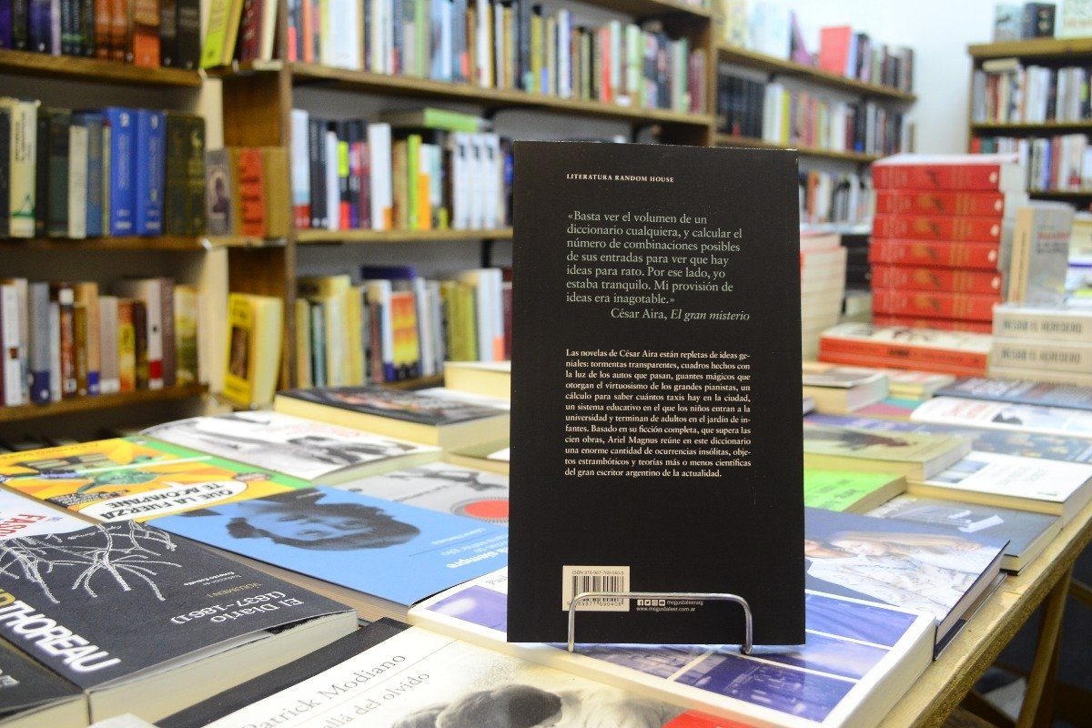 Las novelas de César Aira están repletas de ideas geniales: tormentas transparentes, cuadros hechos con la luz de los autos que pasan, guantes mágicos que otorgan el virtuosismo de los grandes pianistas, un cálculo para saber cuántos taxis hay en la ciudad, un sistema educativo en el que los niños entran a la universidad y terminan de adultos en el jardín de infantes. Basado en su ficción completa, que supera las cien obras, Ariel Magnus reúne en este diccionario una enorme cantidad de ocurrencias insólitas, objetos estrambóticos y teorías más o menos científicas del gran escritor argentino de la actualidad.
