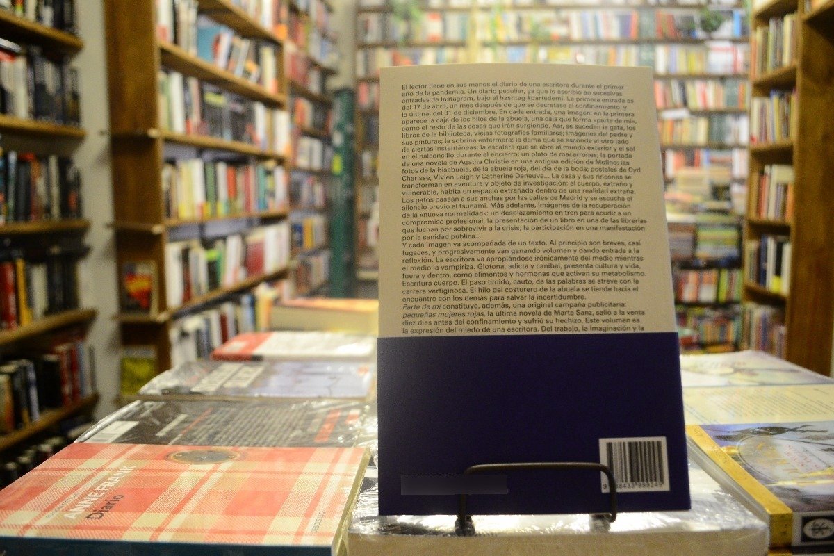 El lector tiene en sus manos el diario de una escritora durante el primer año de la pandemia. Un diario peculiar, ya que lo escribió en sucesivas entradas de Instagram, bajo el hashtag #ParteDeMí. La primera entrada es del 17 de abril, un mes después de que se decretase el confinamiento, y la última, del 31 de diciembre. En cada entrada, una imagen: en la primera aparece la caja de los hilos de la abuela, una caja que forma «parte de mí», como el resto de las cosas que irán surgiendo. Así, se suceden la gata, los libros de la biblioteca, viejas fotografías familiares; imágenes del padre y sus pinturas; la sobrina enfermera; la dama que se esconde al otro lado de ciertas instantáneas; la escalera que se abre al mundo exterior y el sol en el balconcillo durante el encierro; un plato de macarrones; la portada de una novela de Agatha Christie en una antigua edición de Molino; las fotos de la bisabuela, de la abuela roja, del día de la boda; postales de Cyd Charisse, Vivien Leigh y Catherine Deneuve… La casa y sus rincones se transforman en aventura y objeto de investigación: el cuerpo, extraño y vulnerable, habita un espacio extrañado dentro de una realidad extraña. Los patos pasean a sus anchas por las calles de Madrid y se escucha el silencio previo al tsunami. Más adelante, imágenes de la recuperación de la «nueva normalidad»: un desplazamiento en tren para acudir a un compromiso profesional; la presentación de un libro en una de las librerías que luchan por sobrevivir a la crisis; la participación en una manifestación por la sanidad pública…
